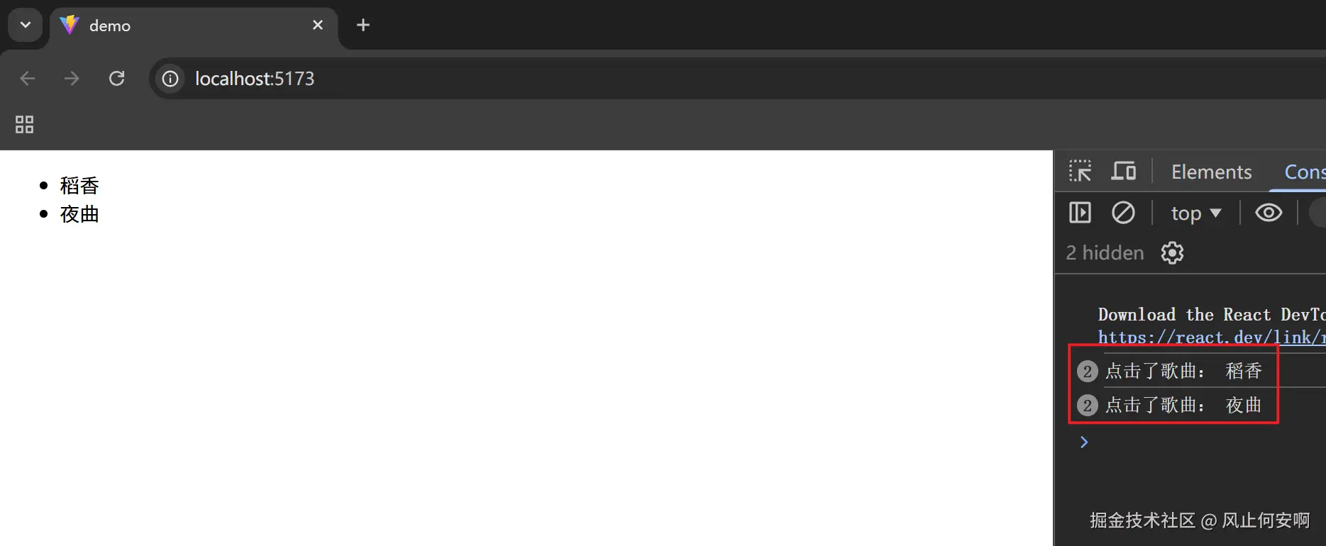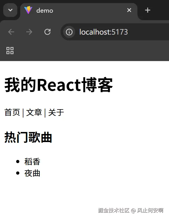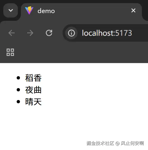 const songs = [{ id: 1, name: '稻香' }, { id: 2, name: '夜曲' }];