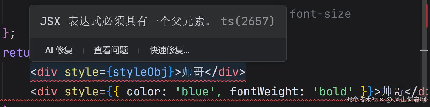 原生 HTML 用style="color: red",JSX 需用对象包裹,属性名用小驼峰: