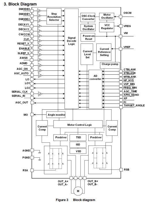 - 内置多重保护 :具备过温(TSD)、过流(ISD)、开环检测、失速检测、欠压锁定(UVLO)等,系统更安全可靠。