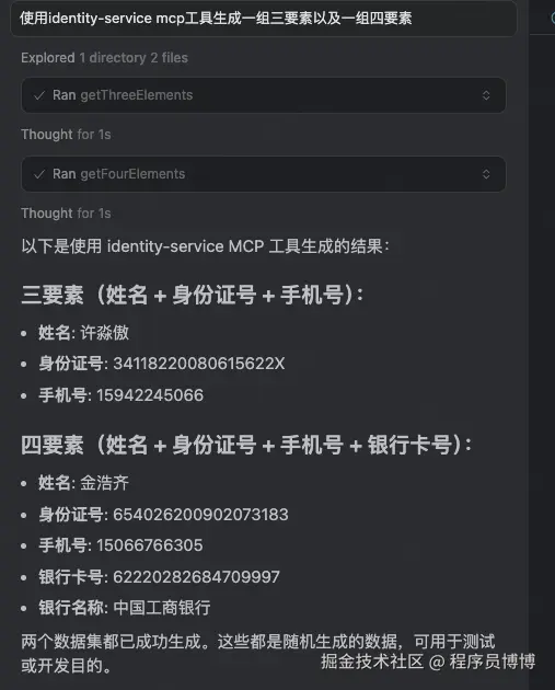 下面我将以vibe coding为例,手把手教大家开发一个,随机生成用户身份证、姓名、手机号、银行卡号等信息的MCP服务,并且最终发布,上传github等等流程,完全不需要你懂一行代码,那我们开始吧