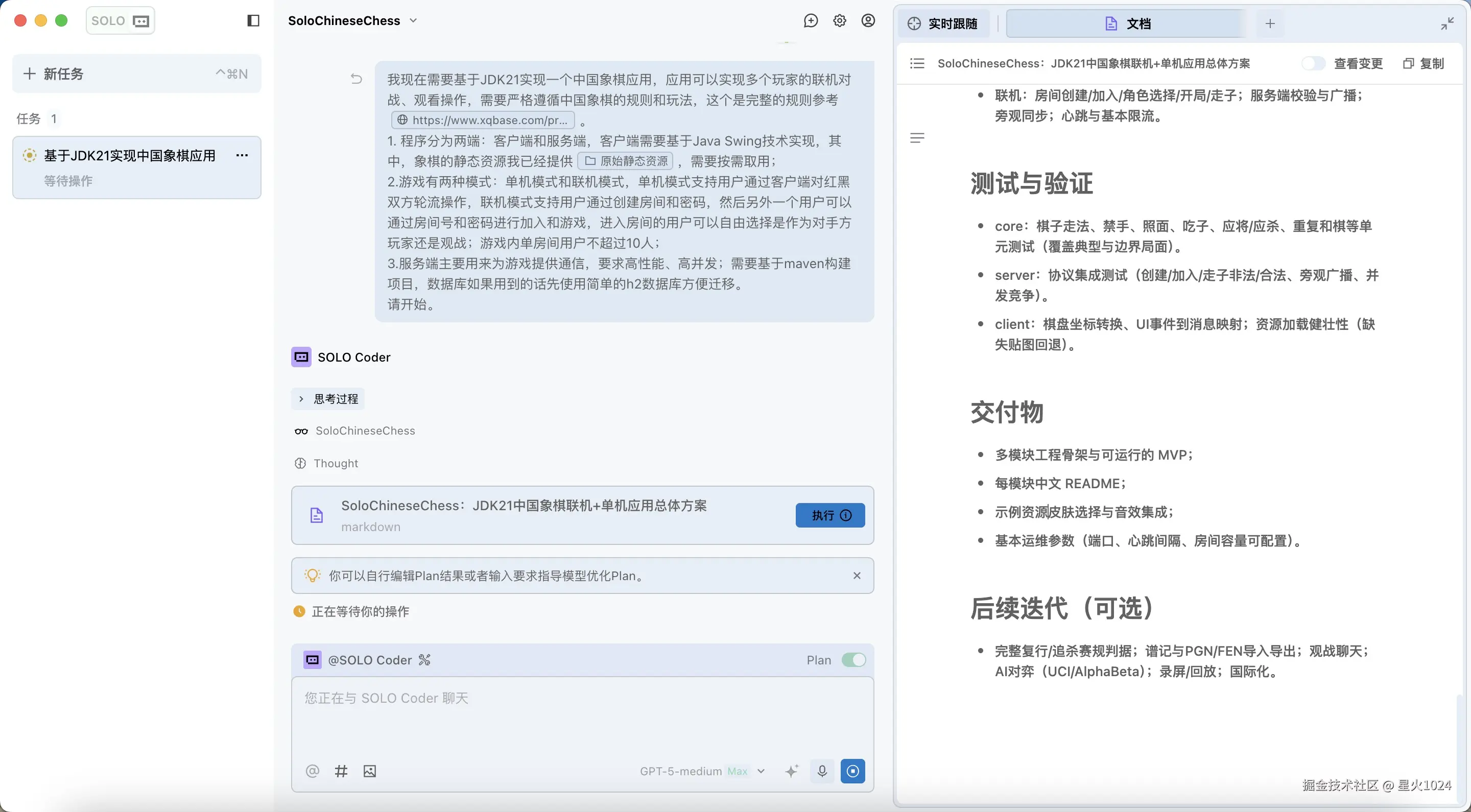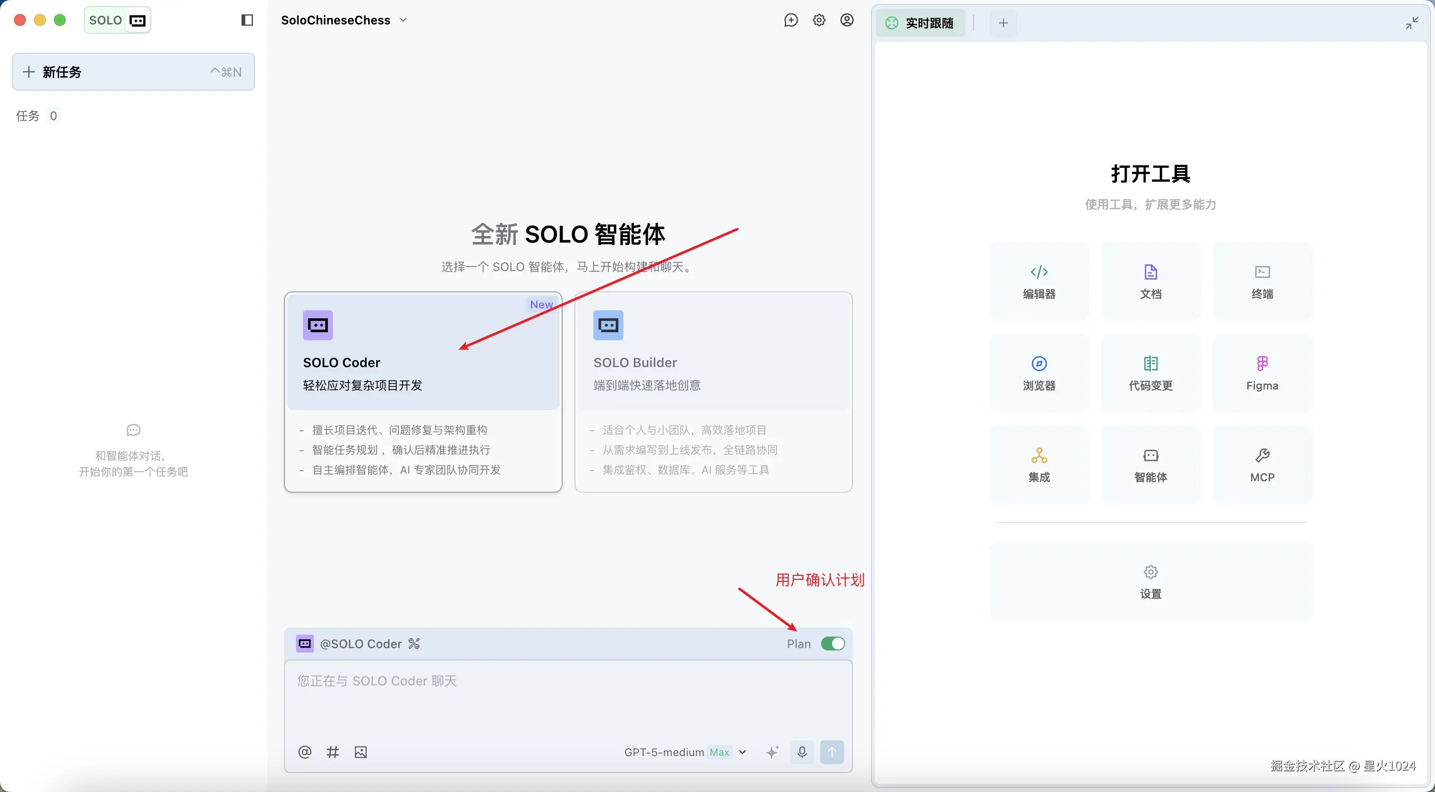 这里我选择的是 SOLO Coder 模式,并开启了 Plan 确认。