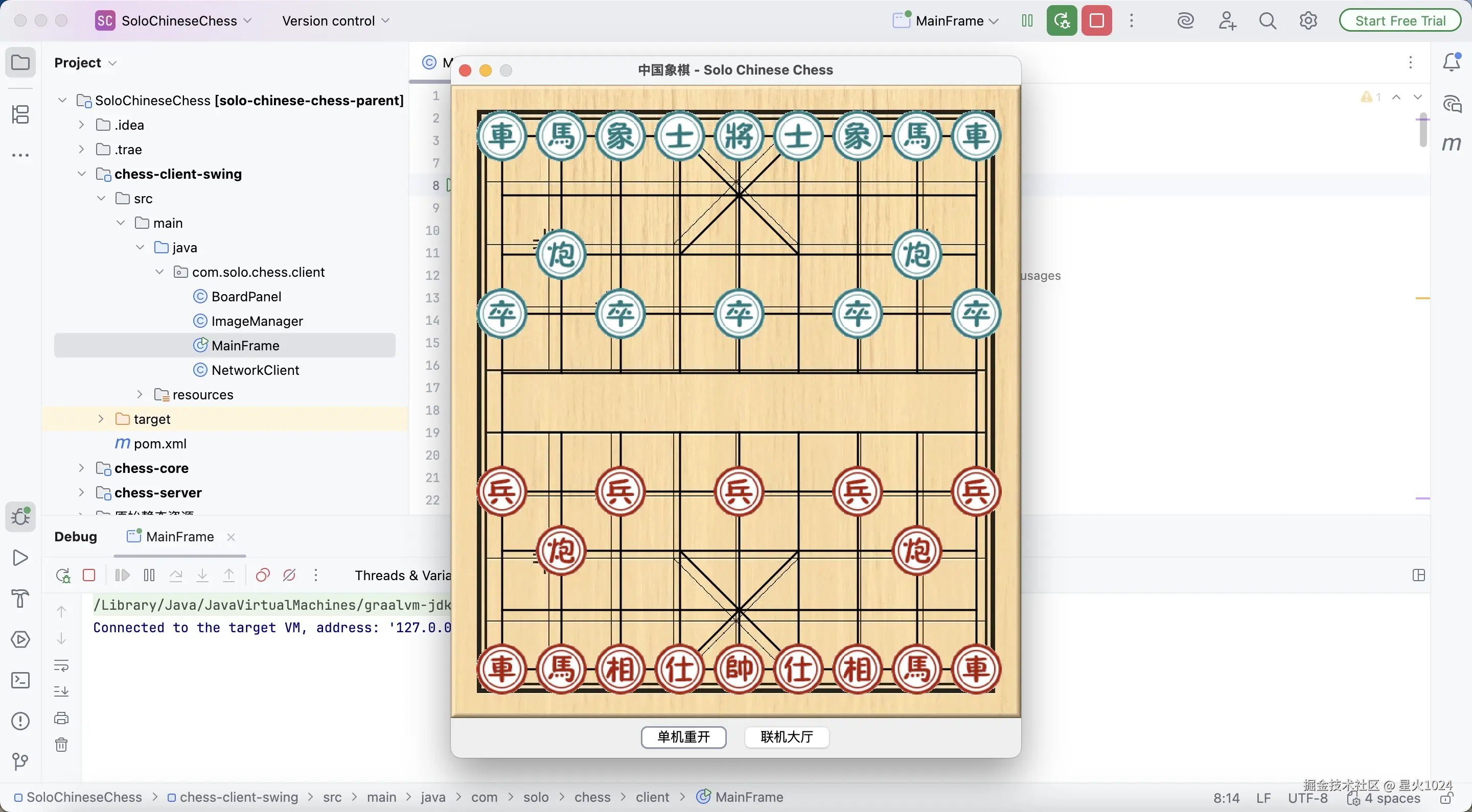 无数年前,当多数后端工程师还埋首于分布式系统的搭建、数据库查询的优化时,有个年轻人,却将目光凝在了桌角那副磨了边的中国象棋上。不为 KPI,不求商业化,只凭一腔热爱,便决意用 Java 一行行代码,手搓出一盘属于自己的中国象棋。