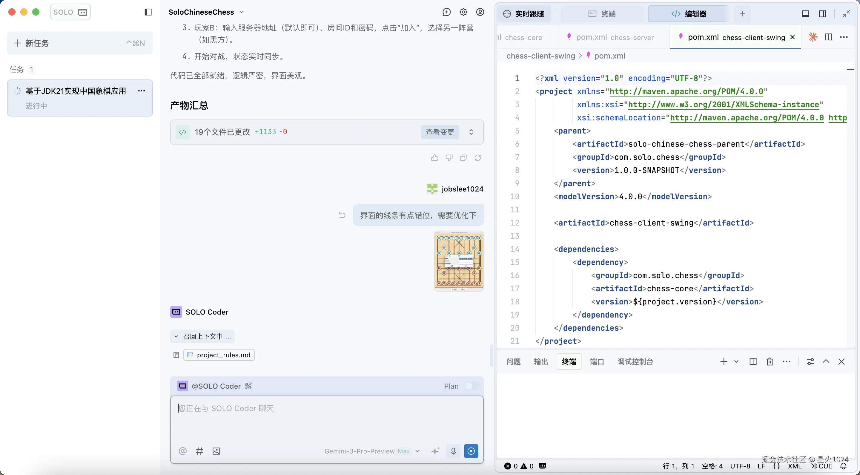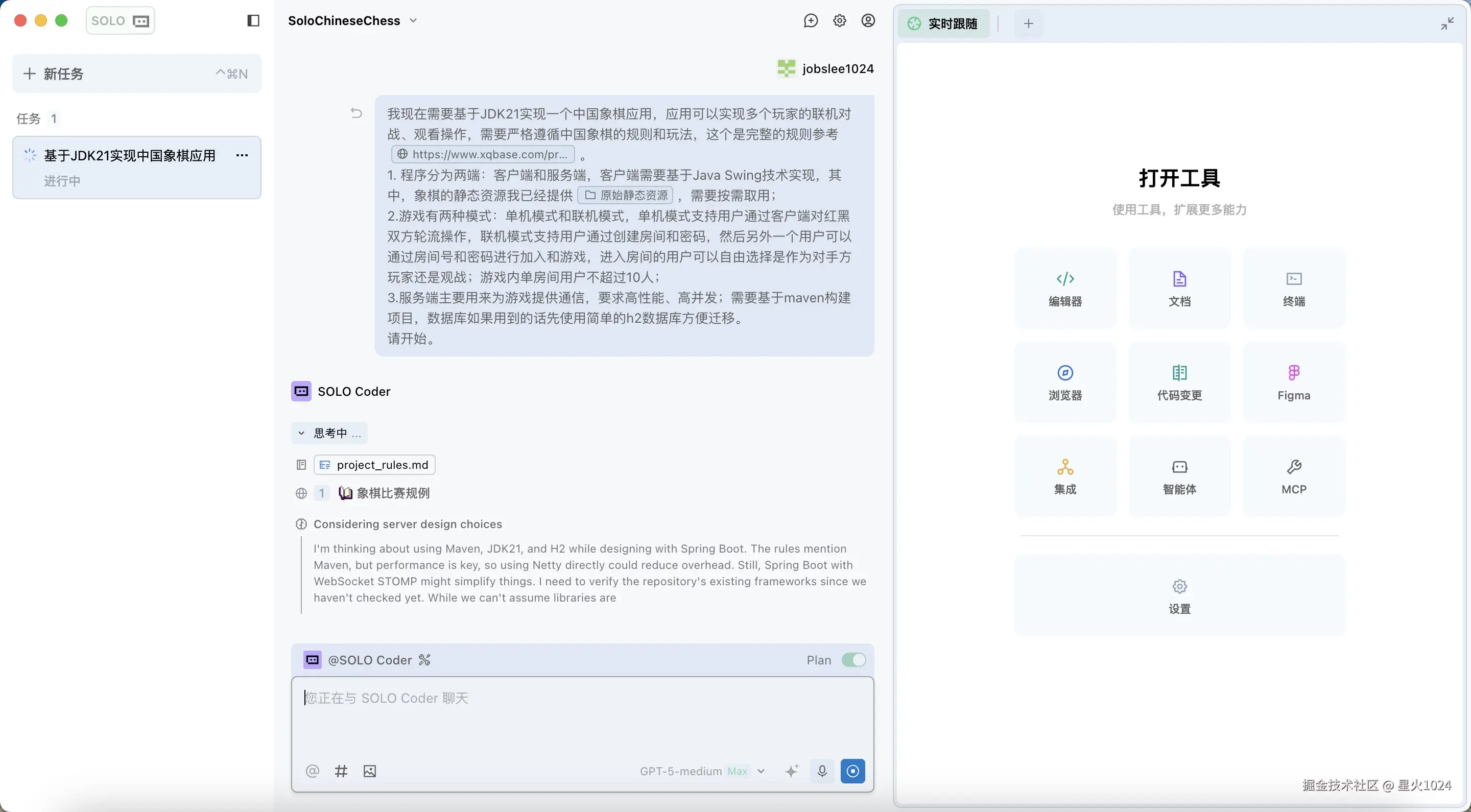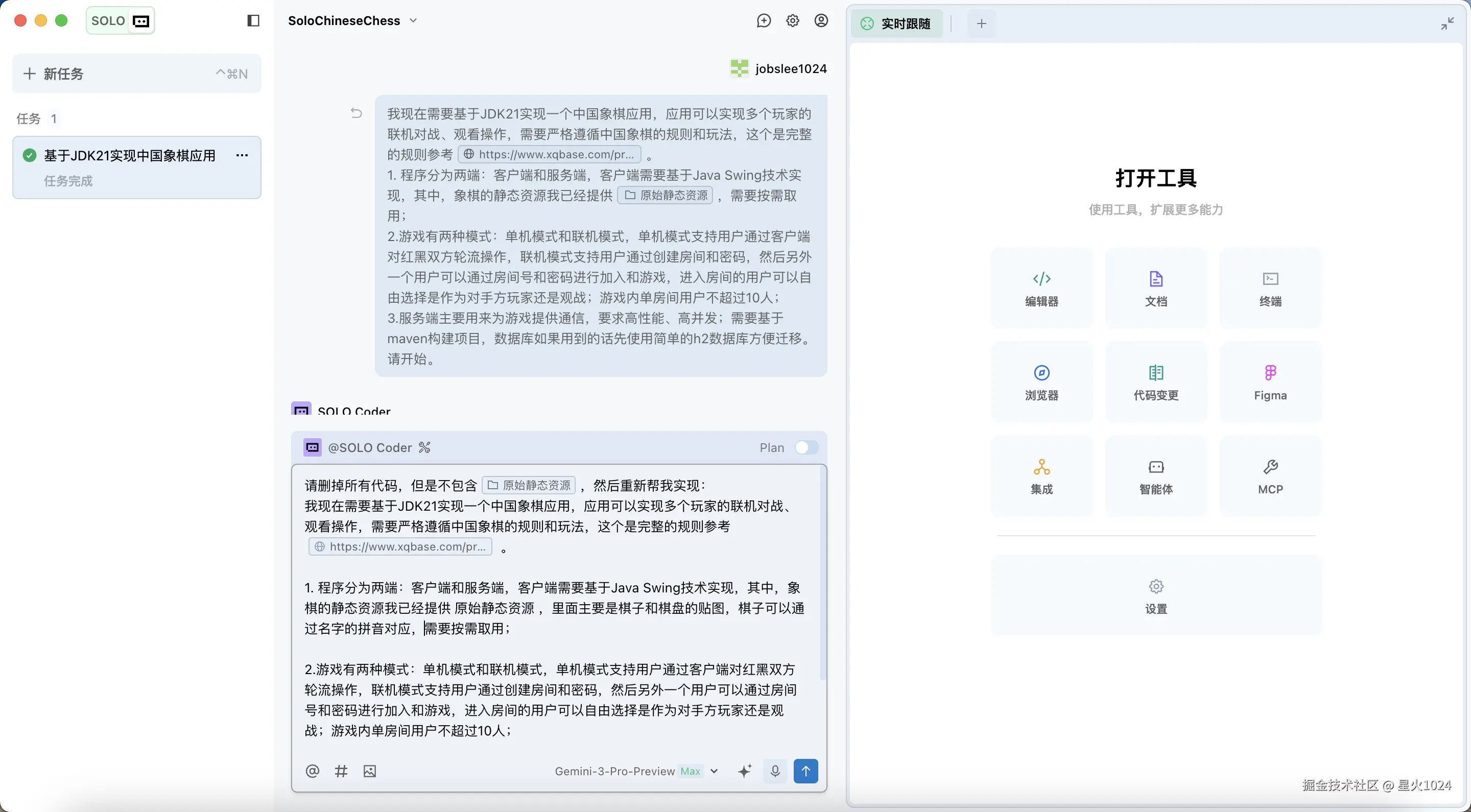至此,仅仅 30 分钟。没费多少功夫,依托 TRAE Solo 的能力,我甚至没再像当年那样死磕棋子的碰撞逻辑和界面渲染,只给出核心需求,它便帮我完成了从需求文档到环境配置再到最终部署的全流程。