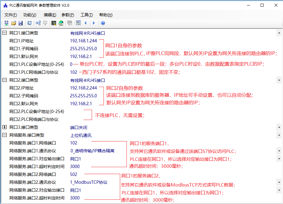 然后打开智能网关的参数软件,设置网关的网络参数,具体如下图: