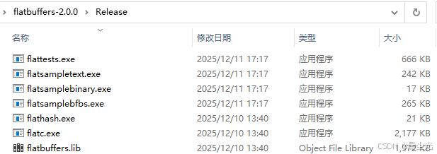flatc 是 FlatBuffers 的编译器,用于将 .fbs 文件编译成 C++ 代码。前一步的 flatbuffers 的 Release 目录中找到 flatc.exe(取决于你的编译设置)。