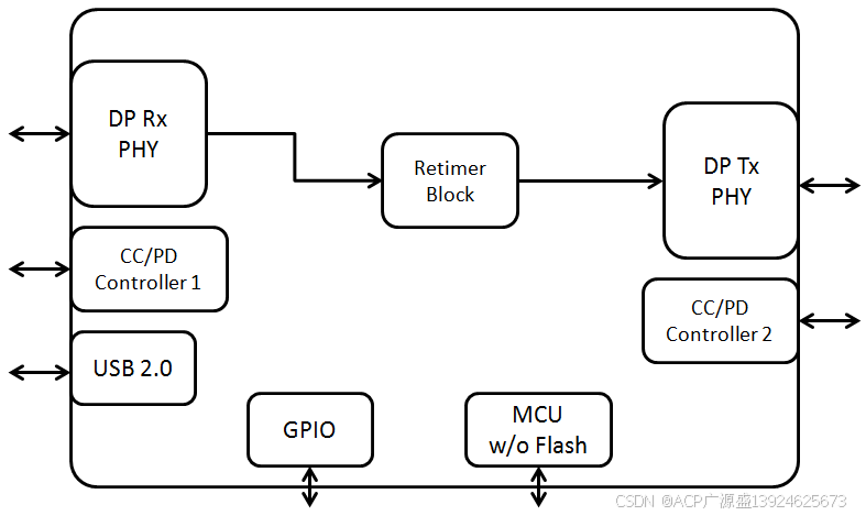 - 核心功能:Type-C/DP 1.4 信号重定时、PD 控制、嵌入式 MCU