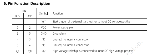 | SW | 功率开关输出 | 接储能电感 L1,内置 850V HVBJT 漏极 |