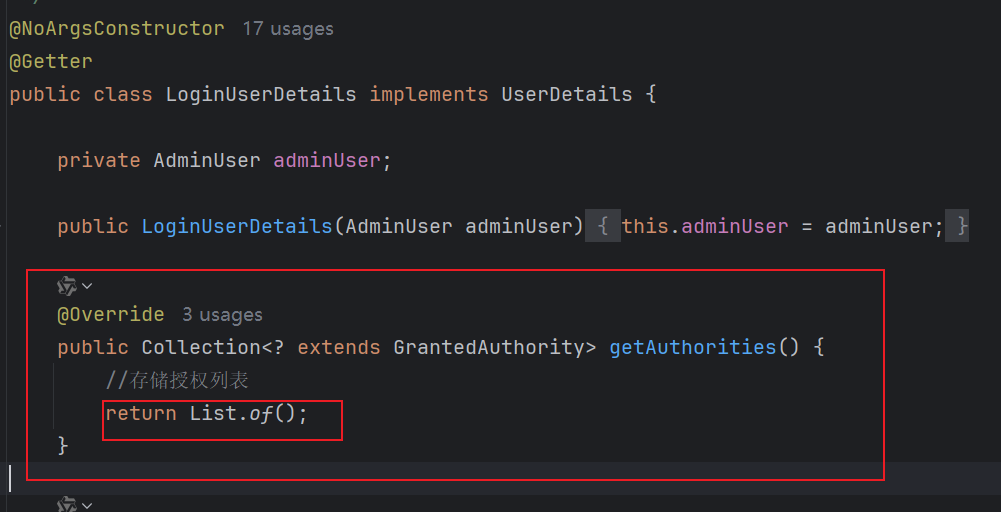 public Collection<? extends GrantedAuthority> getAuthorities() {