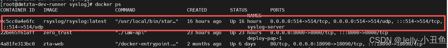 文件中写明,容器镜像使用我们前面拉取的镜像rsyslog/rsyslog:latest,然后做了UDP和TCP的端口映射,然后就是数据持久化和匹配文件的映射