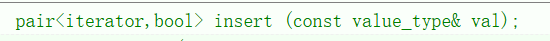 往set中插入元素,value_type就是key的类型,如果已经存在,那就返回元素对应的迭代器,还有false表示插入失败