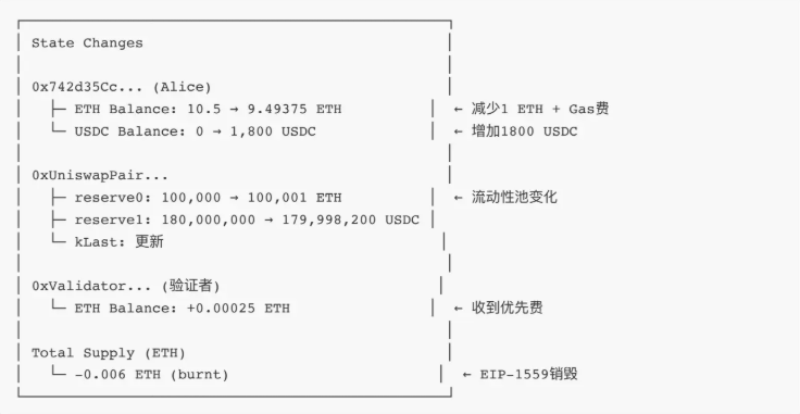 一些高级区块链浏览器(如 Tenderly)会显示状态变化: