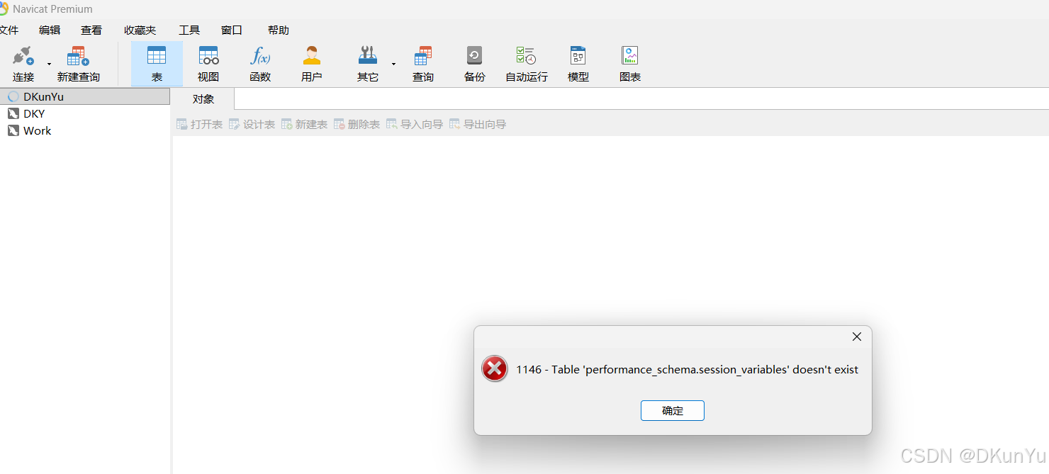 误删了数据库的表,导致出现Navicat无法打开数据库