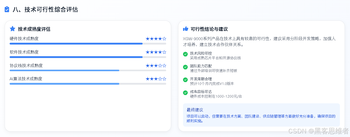 技术风险可控:通过采用成熟的芯片平台、开源协议栈、分阶段开发策略,技术风险可以得到有效控制。