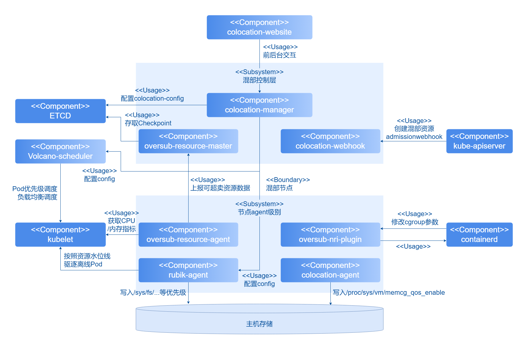 - 在离线混部调度: 针对集群资源利用率低的问题,通过精细化的 QoS 和资源压榨策略,在保证在线服务(Latency Sensitive)SLA 的前提下,动态运行离线任务(如 AI 训练),从而将集群整体资源利用率提升至更高水平。