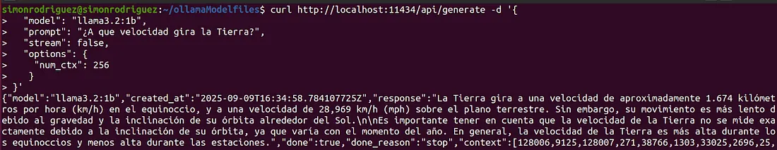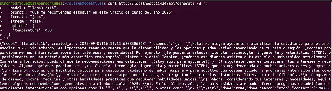 - /api/generate : POST 方法。用单个提示从 LLM 获取响应的端点,没有对话问答序列。适合文本生成或翻译等任务。