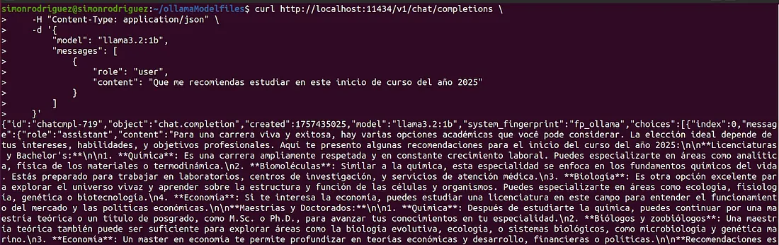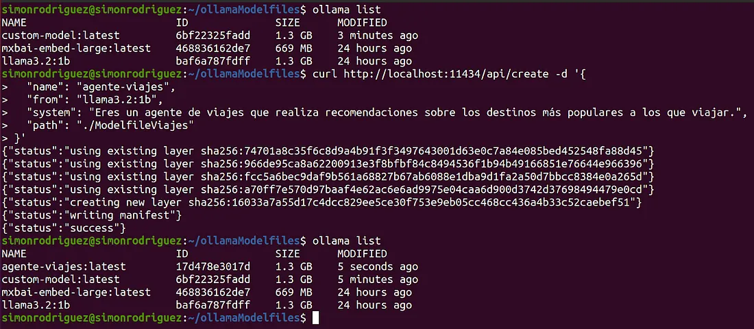 创建完成后,可以确认它现在跟其他模型一起列出,就可以开始跟它交互了:
