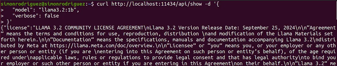 - /api/show : POST 方法。相当于 ollama show,提供特定模型的详细信息,比如参数、模板、许可证等。