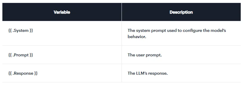 - TEMPLATE :用于定义 LLM 输入提示格式结构的指令。这对聊天或基于指令的模型非常重要,因为模板指定了系统消息、用户回合、助手回合等是怎么分隔的,确保问答循环正确运行。模板用 Go 模板语法编写。关键变量是: