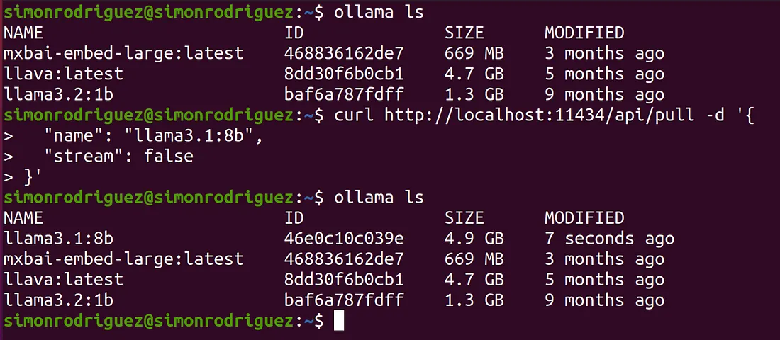 - /api/pull : POST 方法。相当于 ollama pull,用于从远程仓库下载一个模型到本地系统。