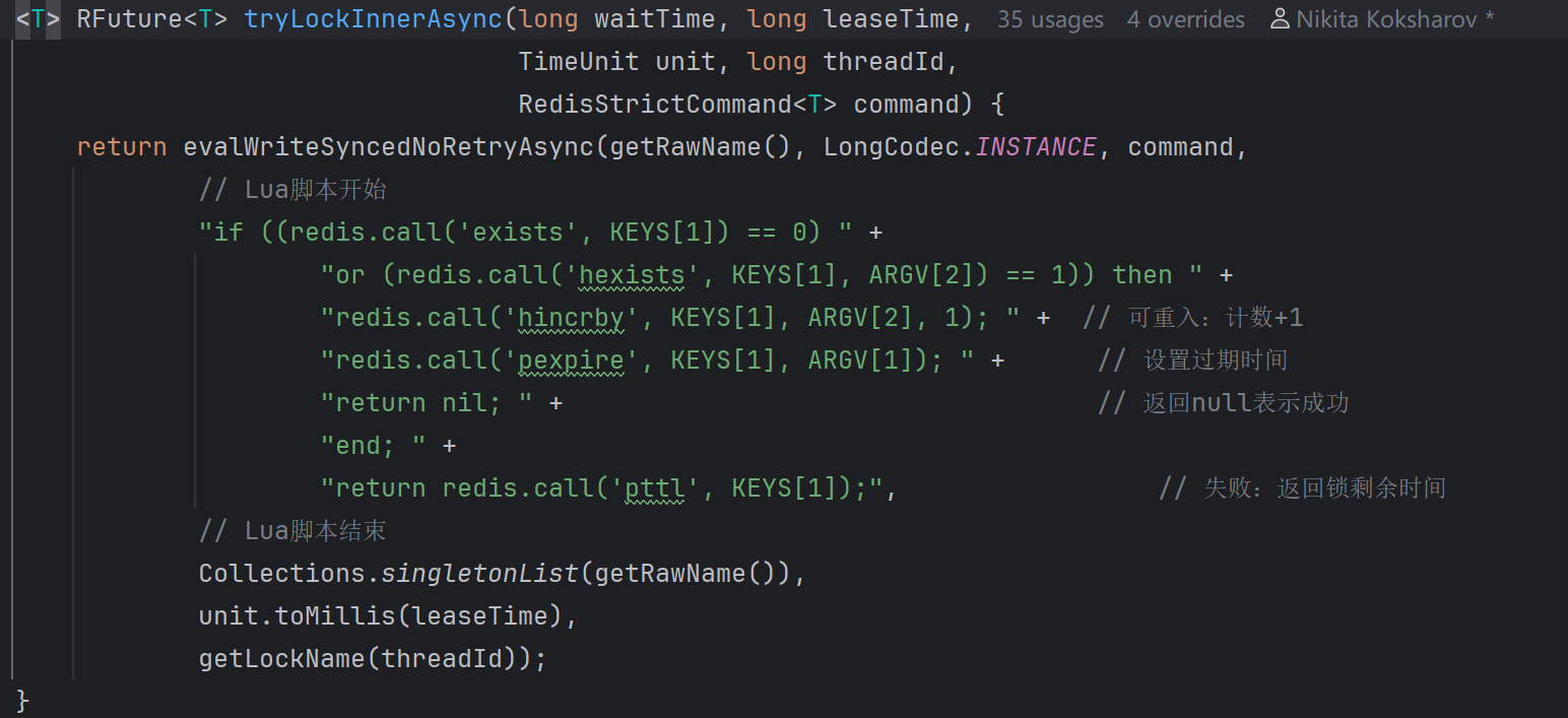 * leaseTime:锁持有时间(null表示使用Watchdog自动续期)