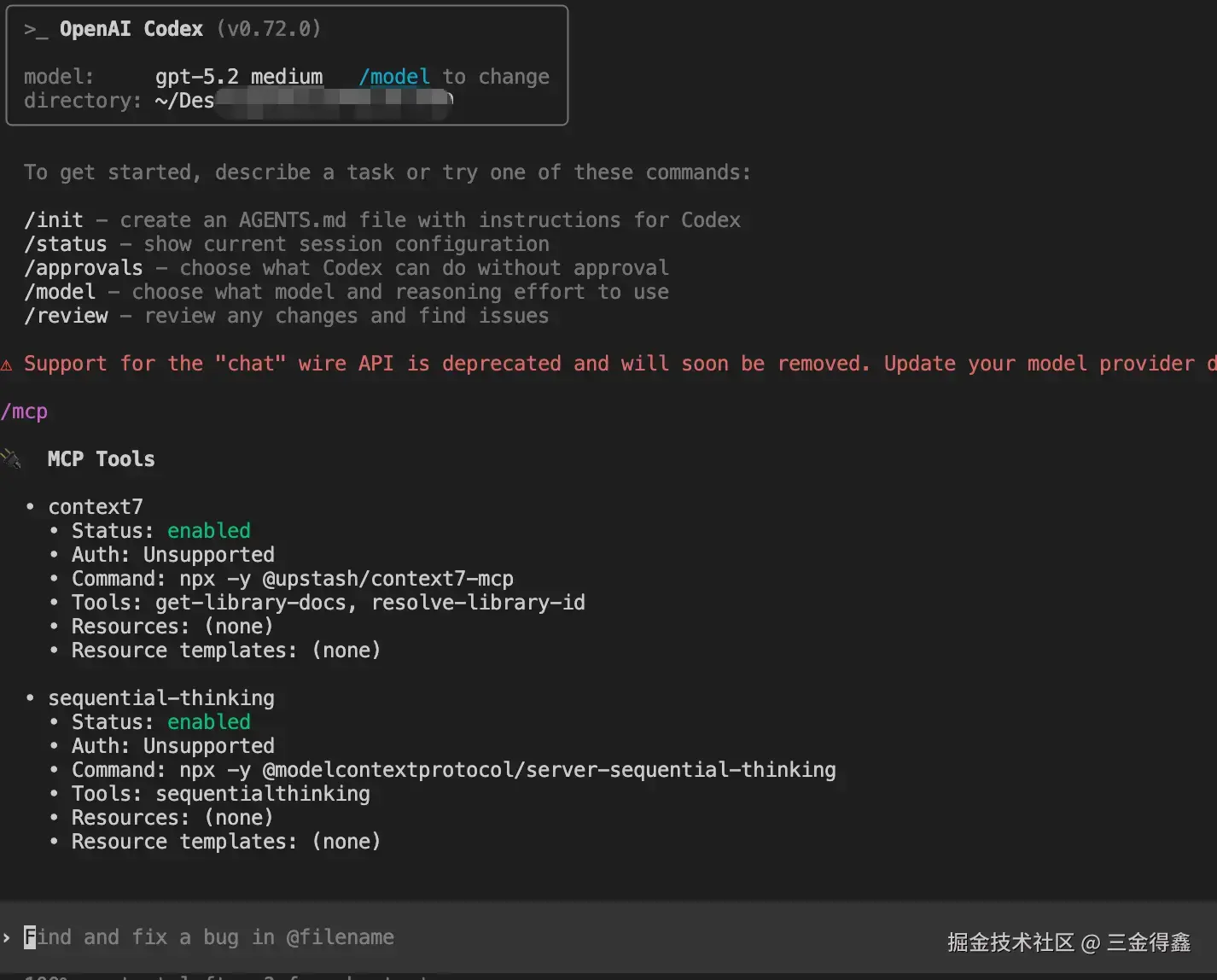 我们在 codex 中看下 MCP 是否可以正常工作:
