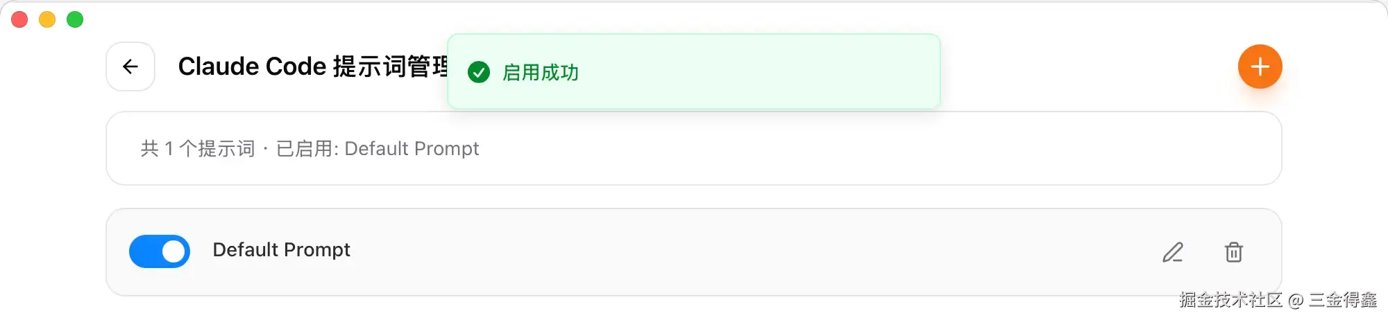 点击左侧的 switch 按钮启用之后,就可以使用该提示词了: