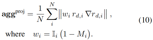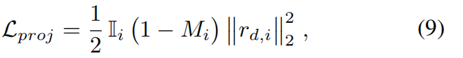 其中 r d , i = d i − D i ( u i , v i ) r_{d,i} = d_i − D_i(u_i,v_i) rd,i=di−Di(ui,vi), M i M_i Mi为初始动态mask, I i I_i Ii为可见性mask, r d , i r_{d,i} rd,i为投影深度di与深度图Di之间的深度残差。