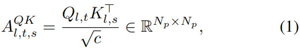 其中 c c c为特征维度, l l l表示层索引, t t t和 s s s为不同帧的索引, N p N_p Np为token数。