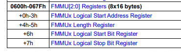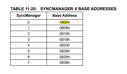 对应寄存器:地址 0x600 → FMMU 配置寄存器;地址 0x800 → SM 配置寄存器(功能:初始化 FMMU 内存映射、SM 同步管理器参数)
