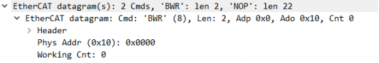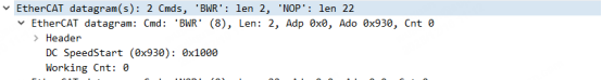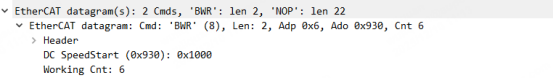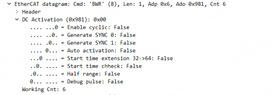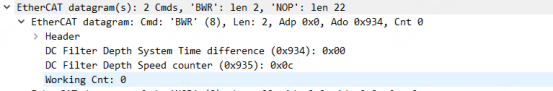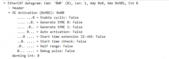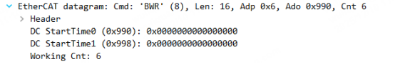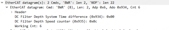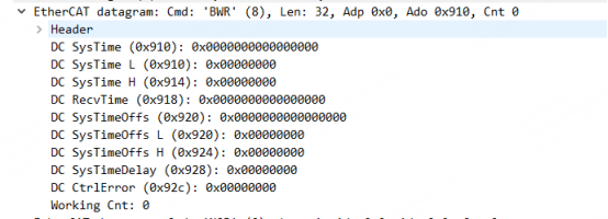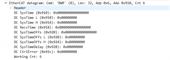 8、BWR 报文写 0x910 寄存器,清零 DC(分布式时钟)同步寄存器: