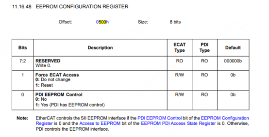 对应寄存器:地址 0x500(功能:开放 EtherCAT 帧对 EEPROM 的访问权限)