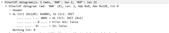2、BWR 报文发送指令,要求所有从站状态统一设置为 Init: