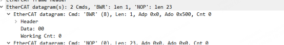 3、BWR 报文写 0x500 寄存器,全部置位为 0,配置 ECAT 帧访问 EEPROM 权限:
