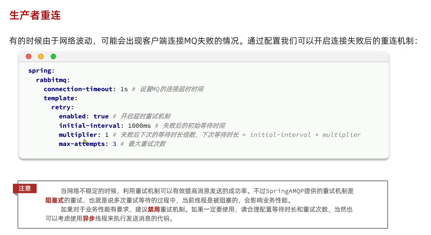 - 一般只要配置好自动,一旦失败,就会无限次数的重复投递消息;
