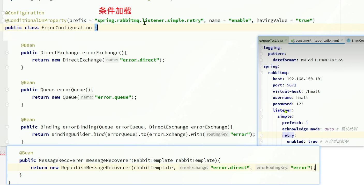 - 代码实现 创建error交换机,error队列,绑定交换机和队列