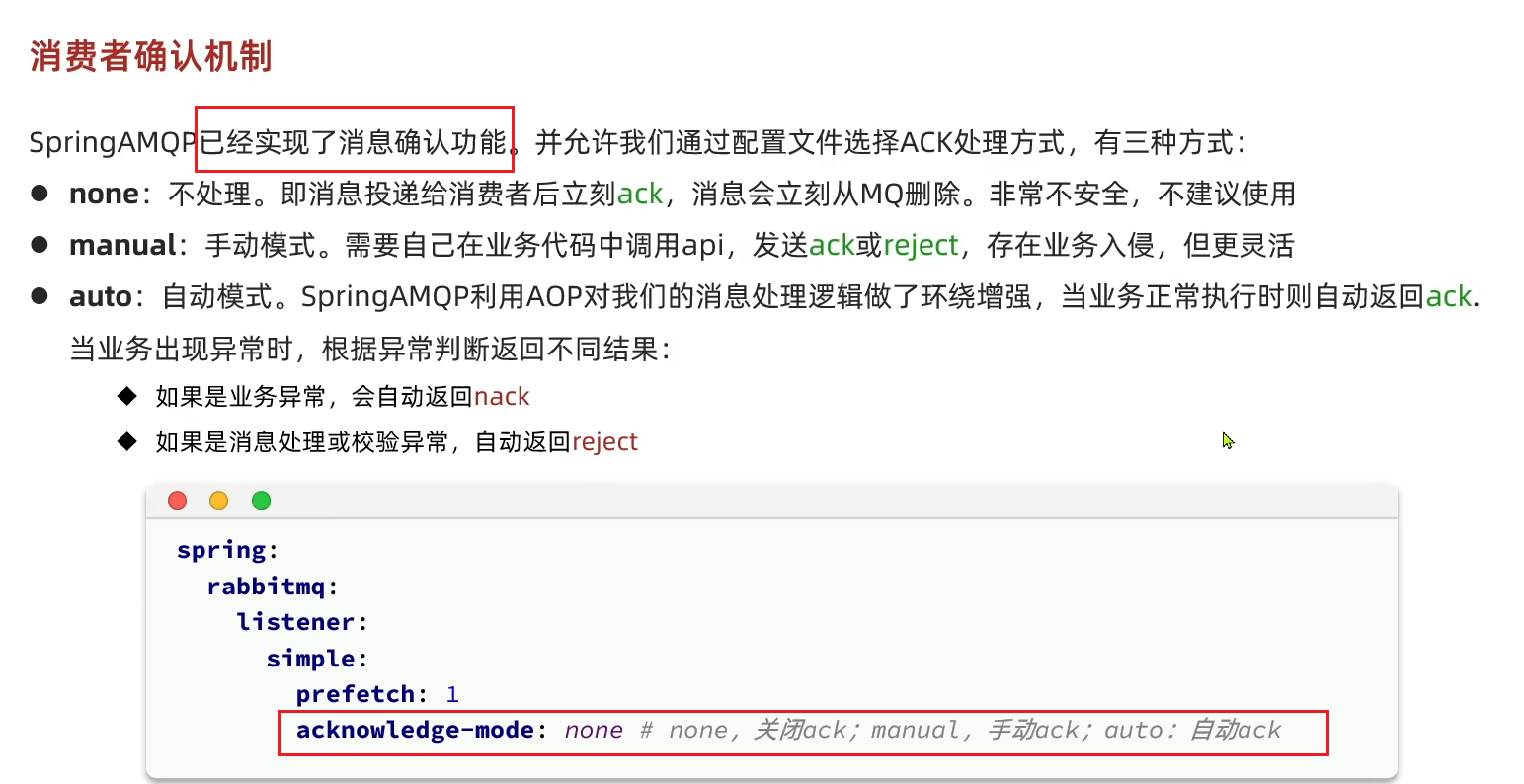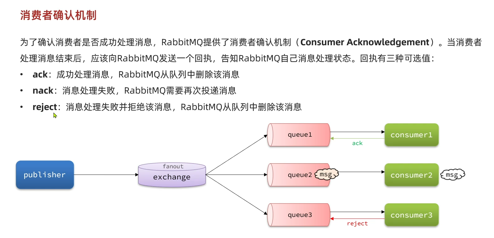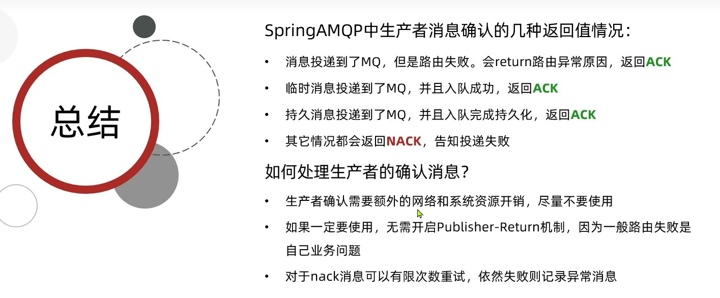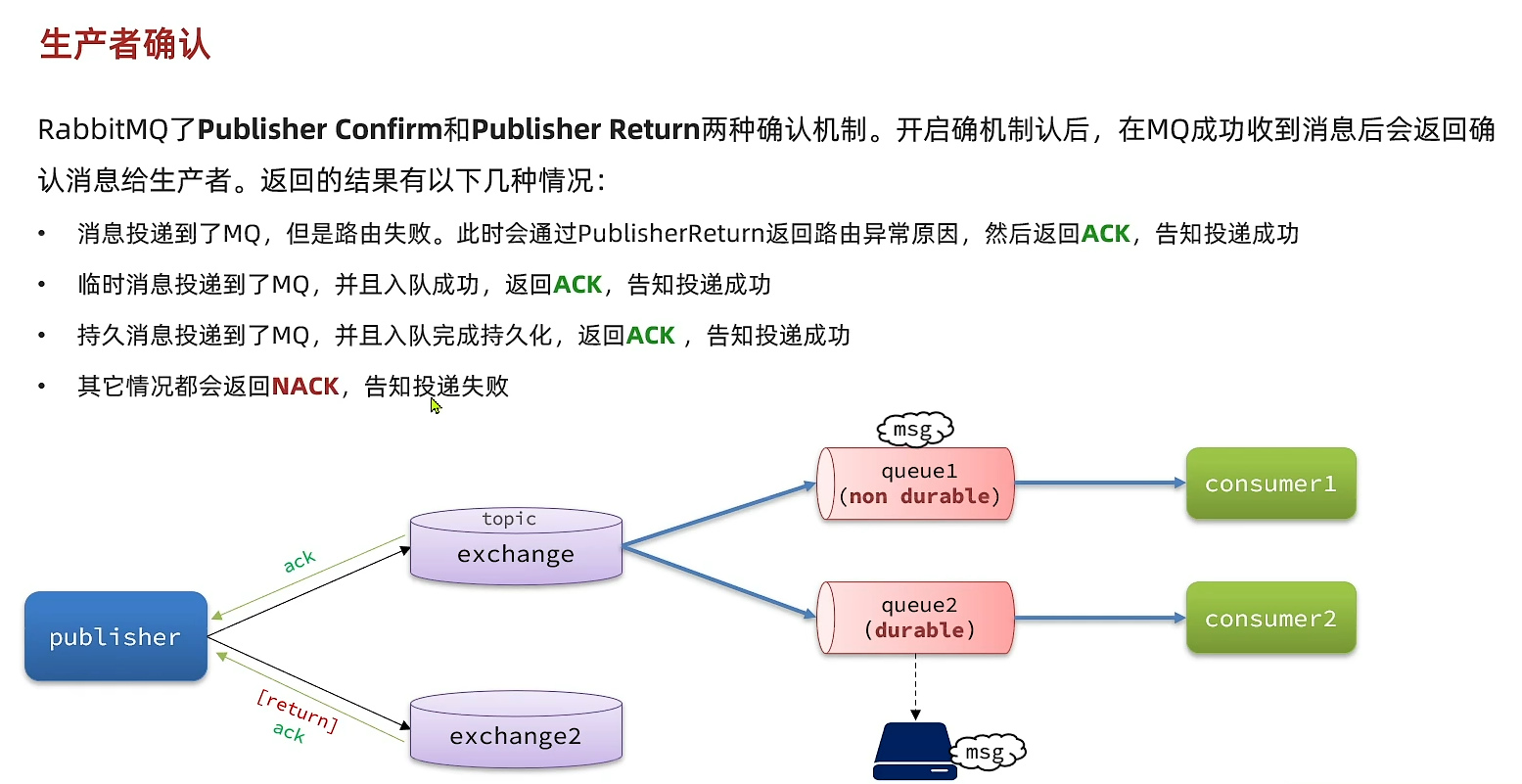- ReturnCallback 确认 "消息从交换机到队列"。
