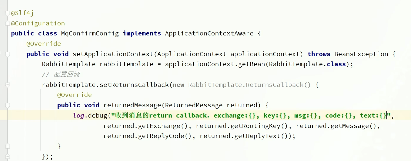 - 生产者确定代码 ReturnCallback 确认 "消息从交换机到队列"。