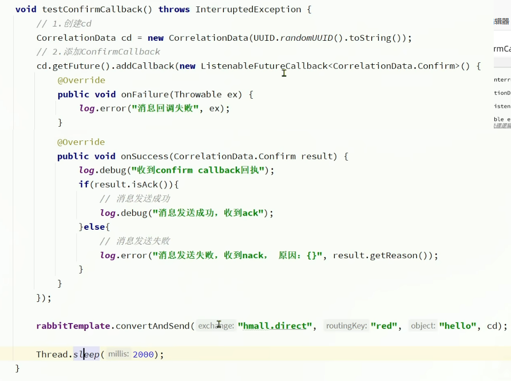 - 实际代码 ConfirmCallback 确认 "消息到交换机";