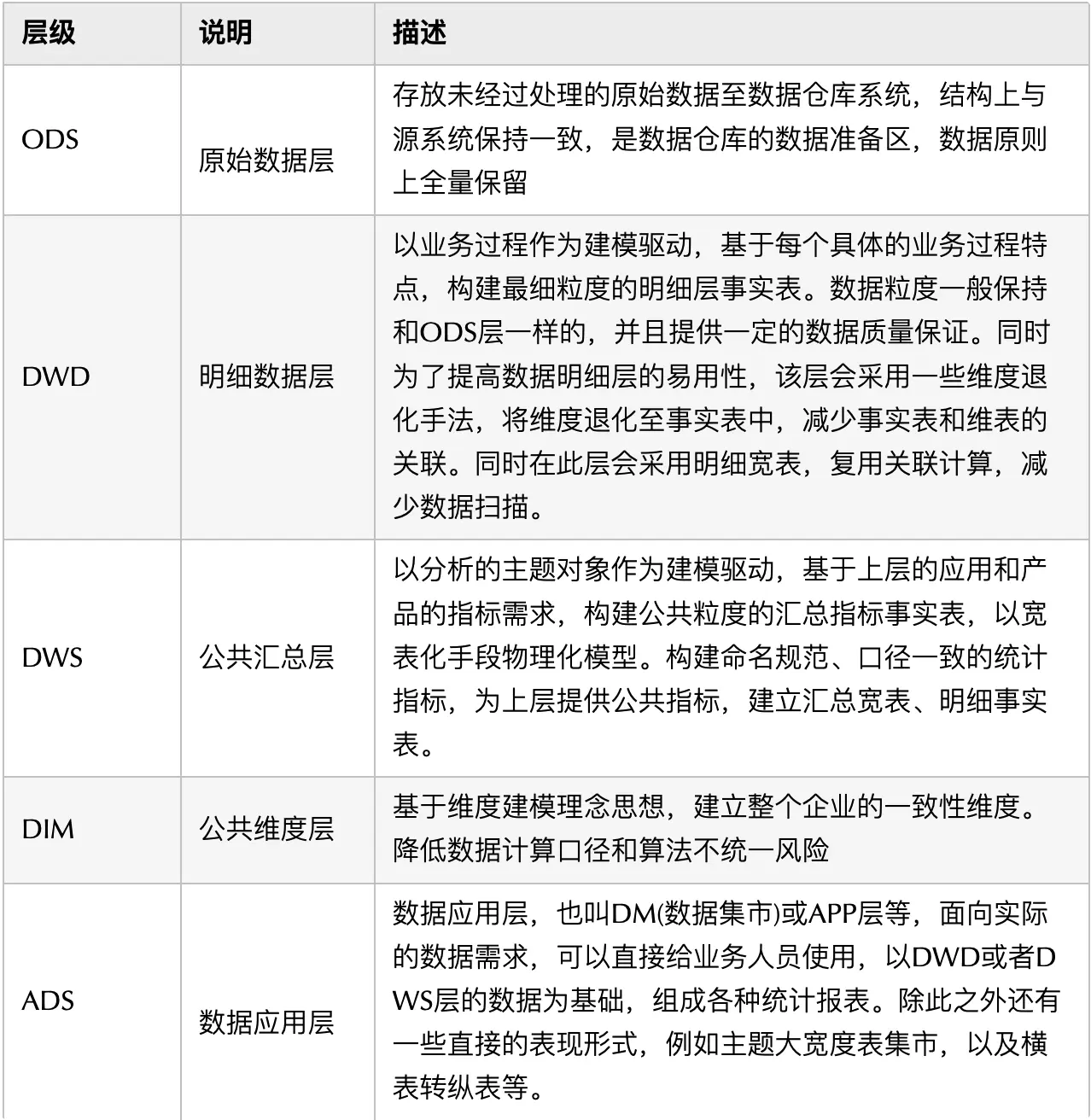 常见的都是把数仓分成四层: