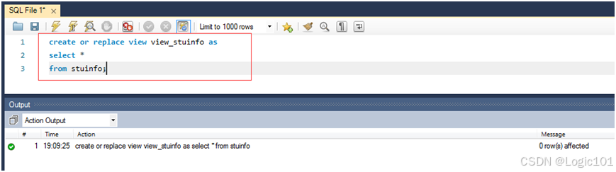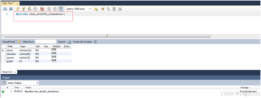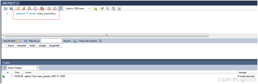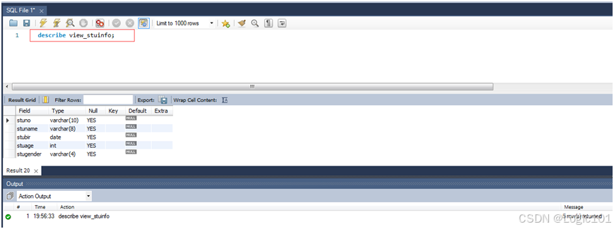 【实验2-20】使用SELECT语句查询创建好的视图。