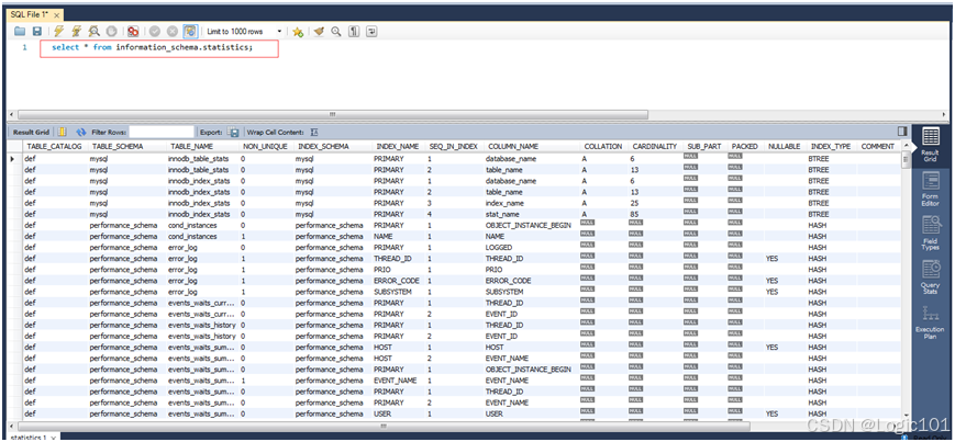 select * from information_schema.statistics;