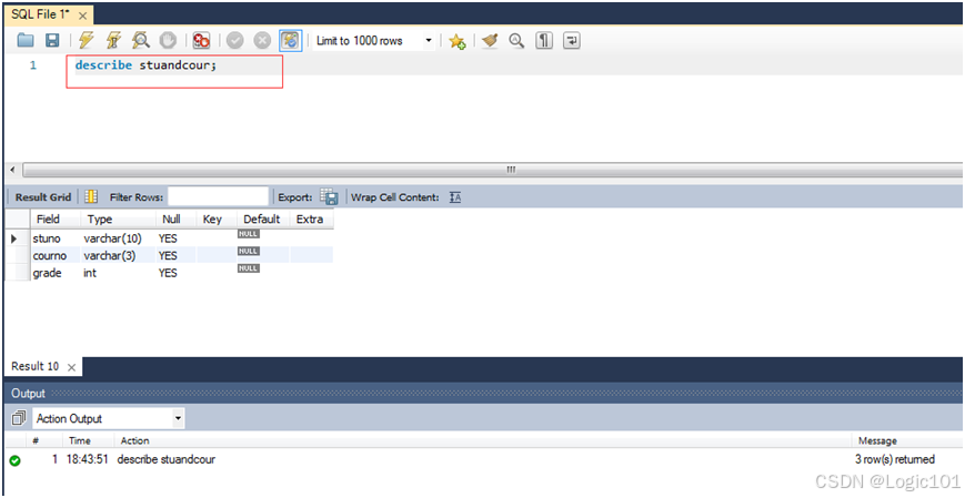 describe stuandcour;