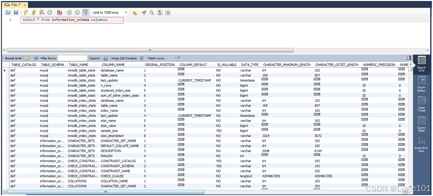 select * from information_schema.columns;