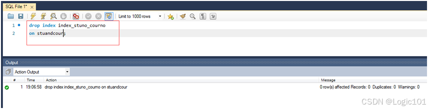 【实验2-15】创建stuandcour表上stuno字段和courno字段上的多列索引。