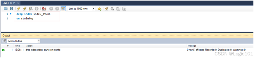 drop index index_stuno on stuinfo;