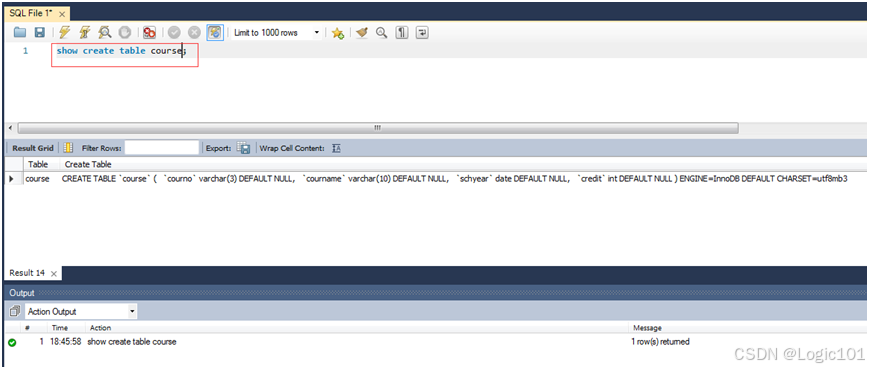 show create course;