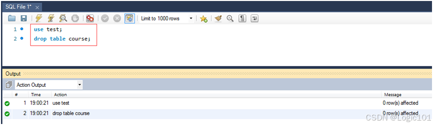 【实验2-13】删除test数据库中的course表。