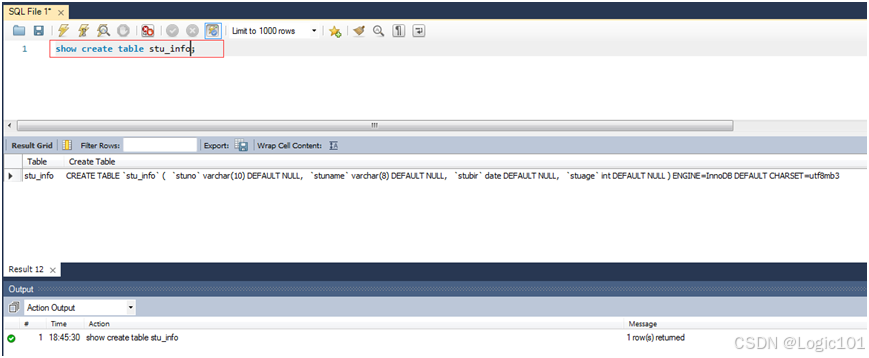 show create table stu_info;