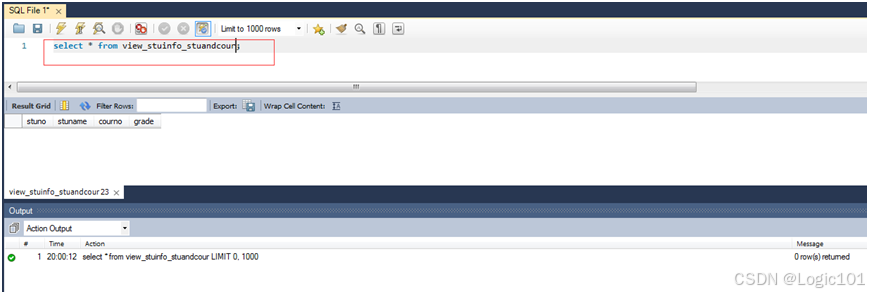 【实验2-18】创建stuinfo表和stuandcour上的多源视图,包含stuno、stuname、courno、grade。