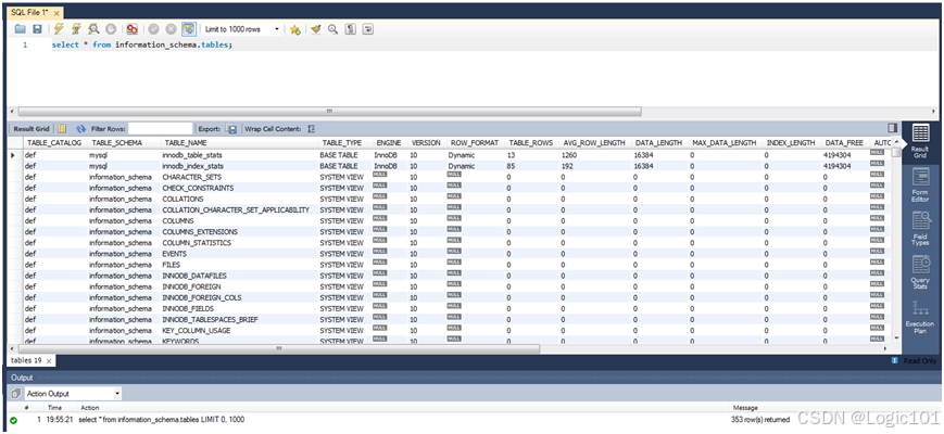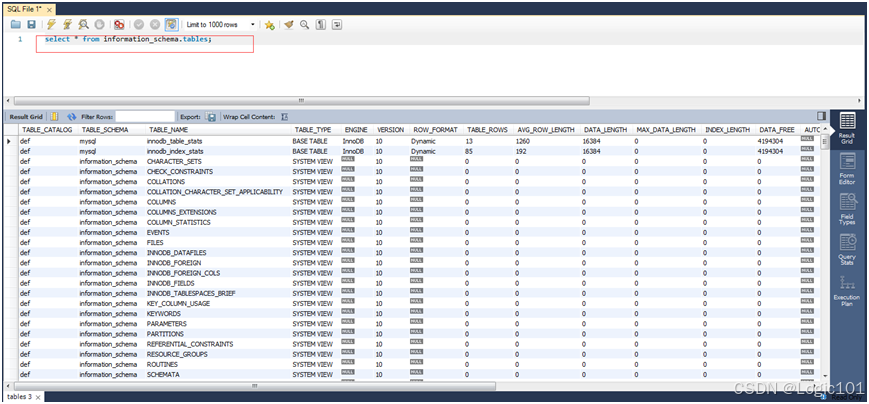 【实验2-2】查看INFORMATION_SCHEMA.TABLES 表中的信息。